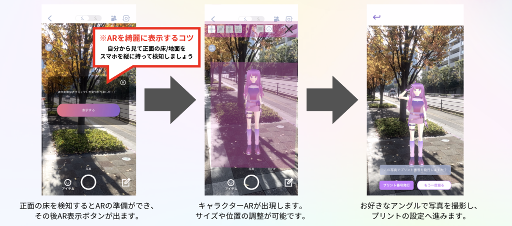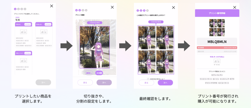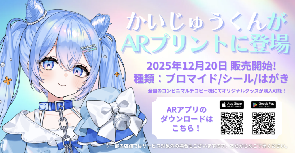 かいじゅうくんARコラボ ◼️かいじゅうくんARフォトプリント 概要 VTuberのかいじゅうくんがmARbieフォトプリントに登場!mARbieアプリをダウンロードして、かいじゅうくんと一緒にお出かけ先や、クリスマス&お正月に合わせて写真を撮ろう! ARの設置方法 プリント番号発行方法 コンビニプリント利用方法 コンビニ別の操作方法を見る 取扱店舗 セブン-イレブン ファミリーマート ローソン ミニストップ ポプラ デイリーヤマザキ セイコーマート ※一部店舗ではサービスをご利用いただけない場合がございます。 ※A4光沢紙はファミリーマート・ローソン・ミニストップ・ポプラでの販売となります。 ※シール紙はファミリーマート・ローソン・ミニストップでの販売となります。 ※ハガキ紙はセブン-イレブン・ファミリーマート・ローソン・ミニストップでの販売となります。 販売価格 写真L判:200円 写真2L判:300円 写真スクエア:200円 シールL判:200円 シール2L判:500円 シールスクエア:400円 はがき:200円 A4光沢紙:300円 ARアプリのダウンロード App Store : https://apps.apple.com/jp/app/marbie-%E3%83%9E%E3%83%BC%E3%83%93%E3%82%A3/id6443805010?platform=iphoneGoogle Play :https://play.google.com/store/apps/details?id=com.OneNative.mARble&hl=ja